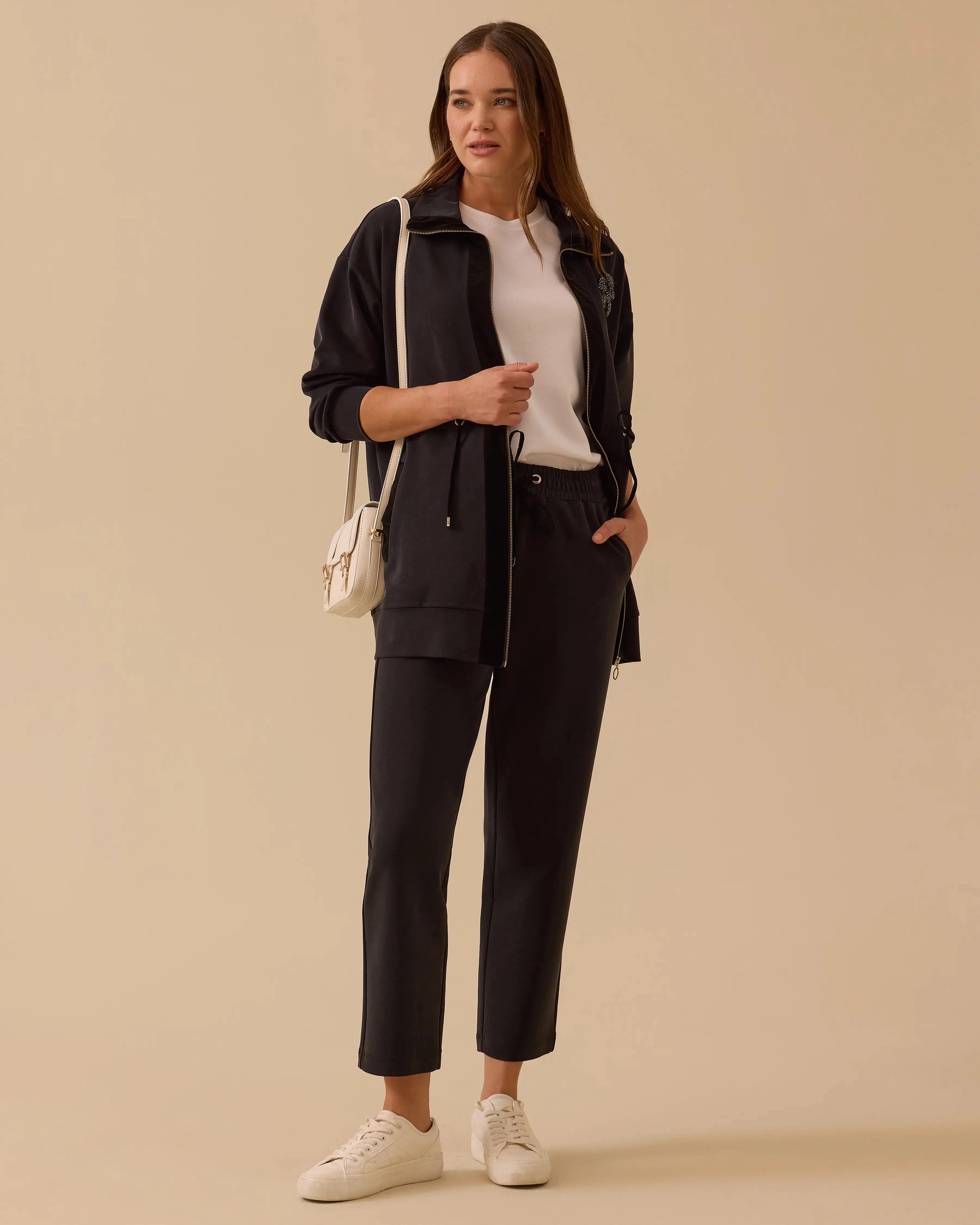 Yüksek Bel Bilek Boy Bağcıklı Pantolon, ayarlanabilir bel detayıyla konforlu ve şık.