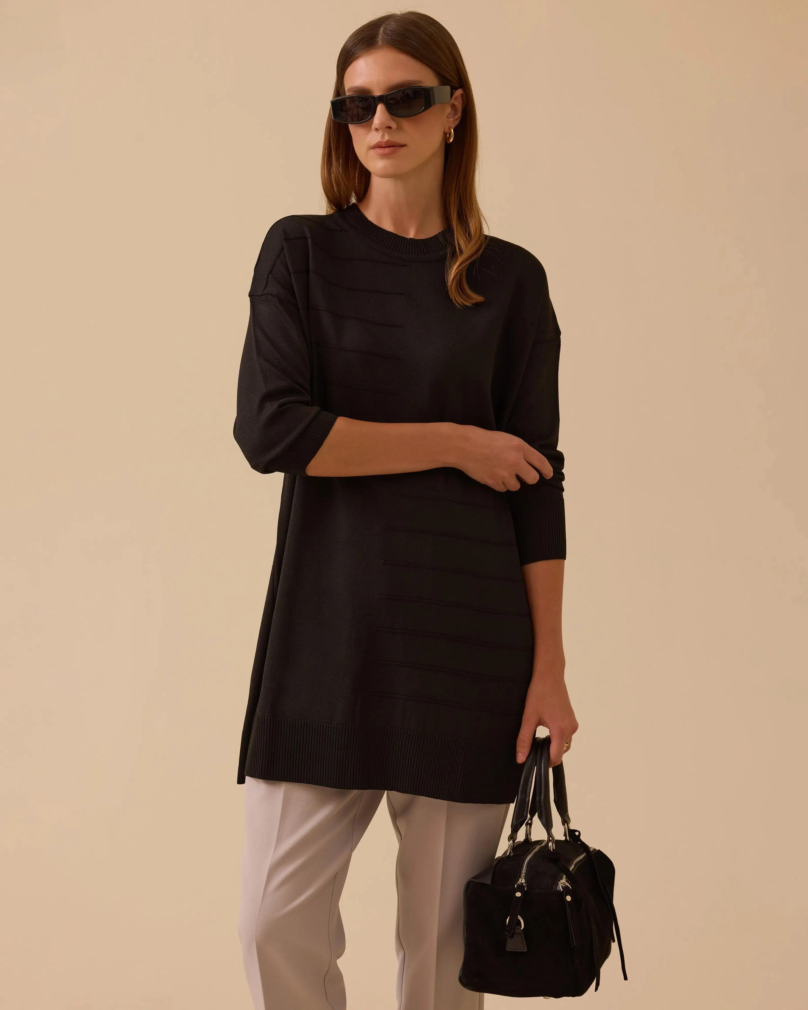 Çizgi Desen Detaylı Triko, modern ve sade tasarımıyla hem günlük hem şık kombinlerinize uyum sağlar.