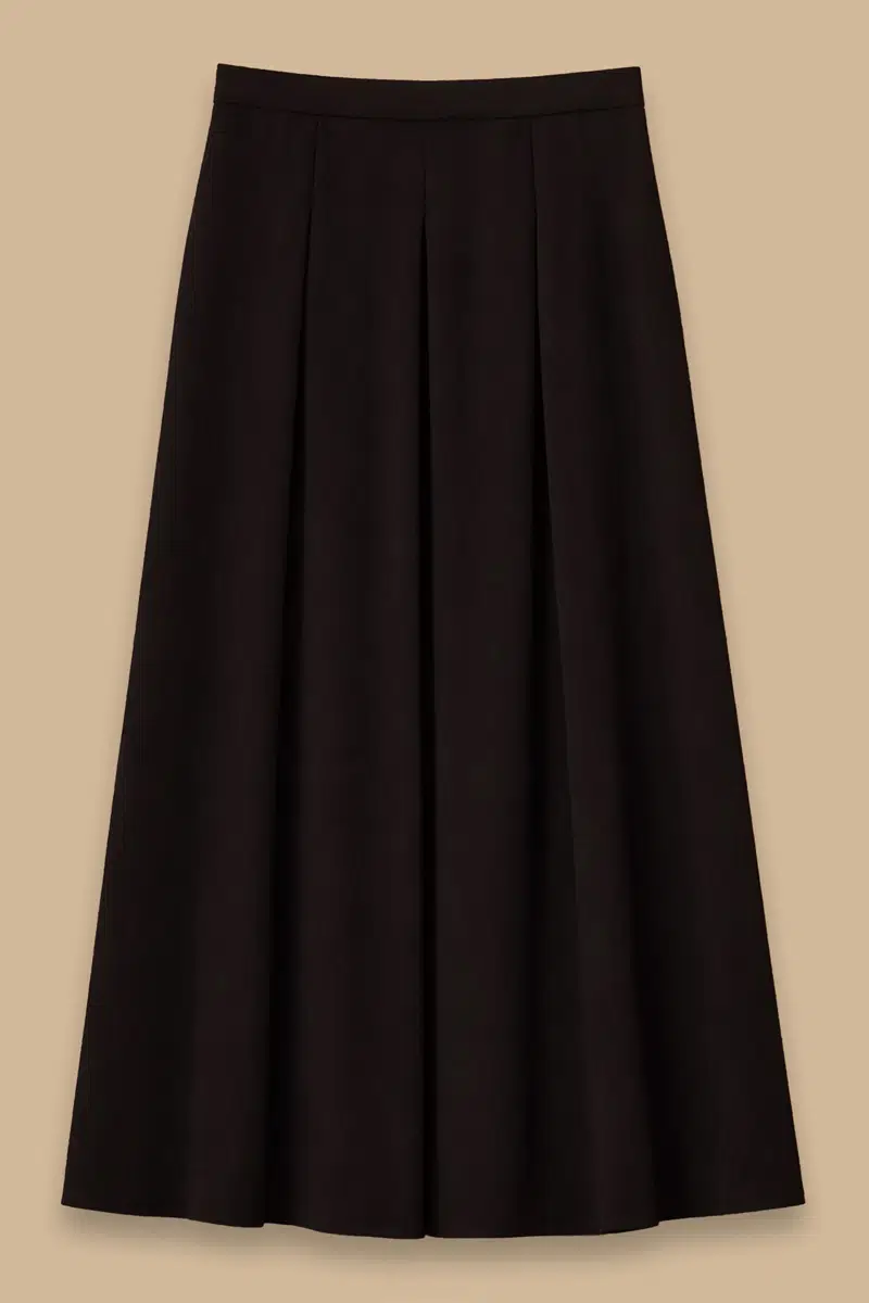 Pile Detaylı Kloş Etek, kloş kesimi ve zarif pile detaylarıyla feminen ve şık bir görünüm sunar.
