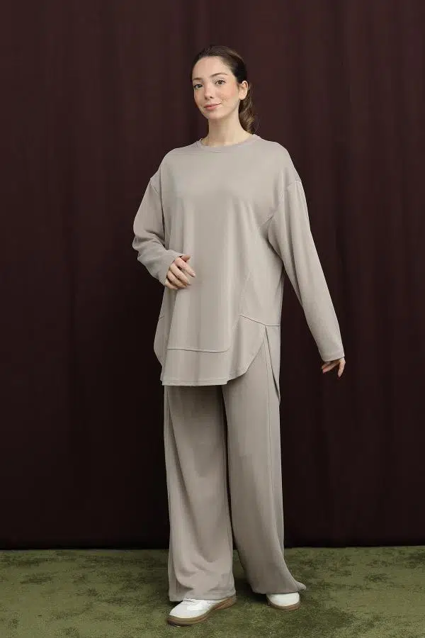 Açıklama : Minimalist tasarımıyla her gardıroba uyum sağlayan bu basic takım, konforlu yapısıyla günlük şıklığı ön plana çıkarır. Yumuşak dokulu kumaşı sayesinde gün boyu rahat bir kullanım sunar ve zamansız kombinler oluşturur.