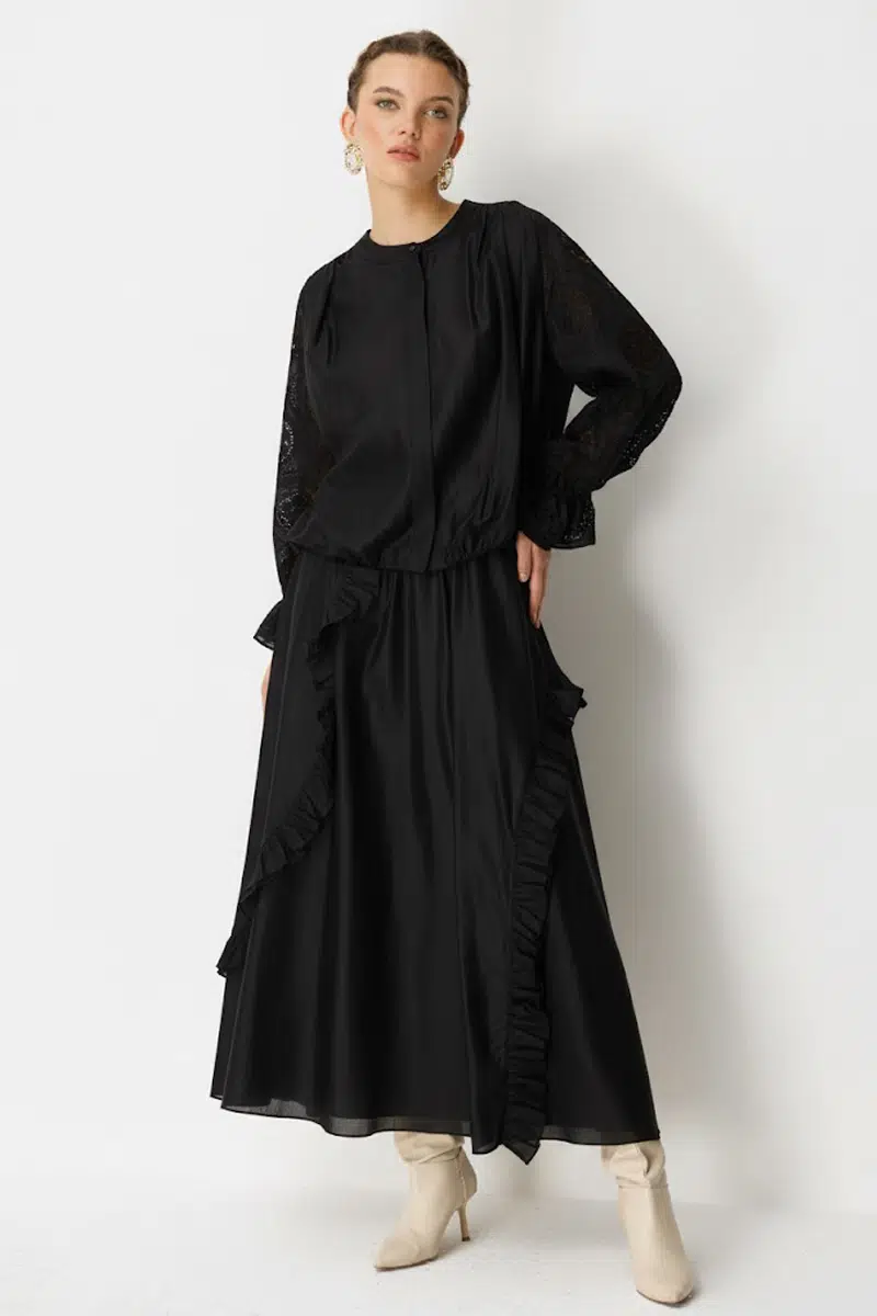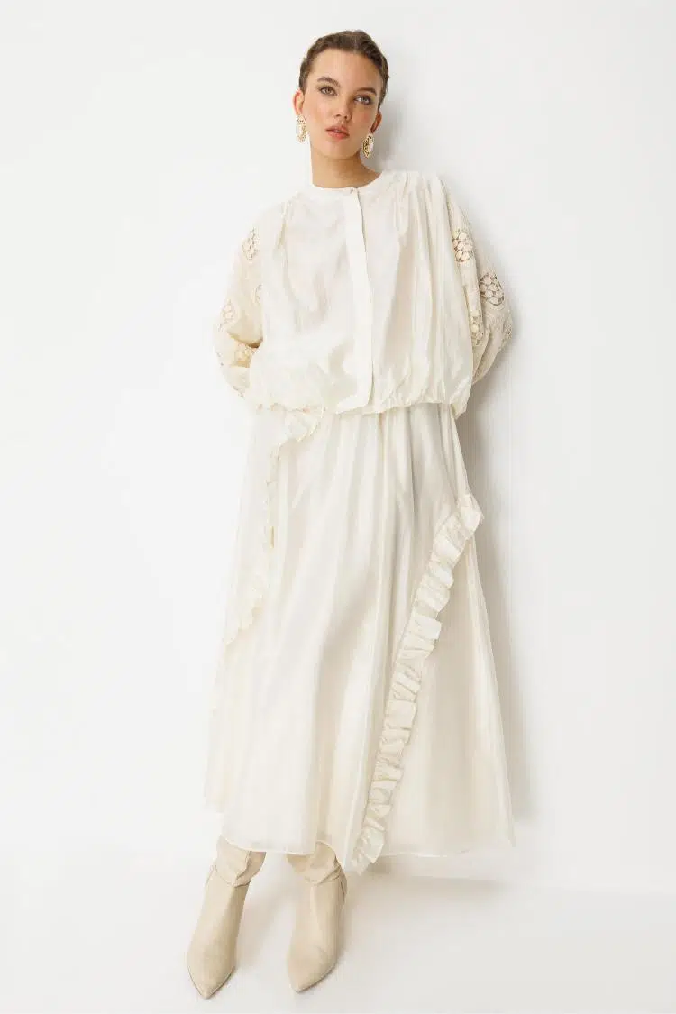 SezonSonbahar/Kış Kumaş GrubuDokuma Kumaş% 100 Pamuk Manken ÖlçüleriBoy: 177 Cm/ Göğüs: 82 Cm/ Bel: 61 Cm/ Basen: 89 Cm