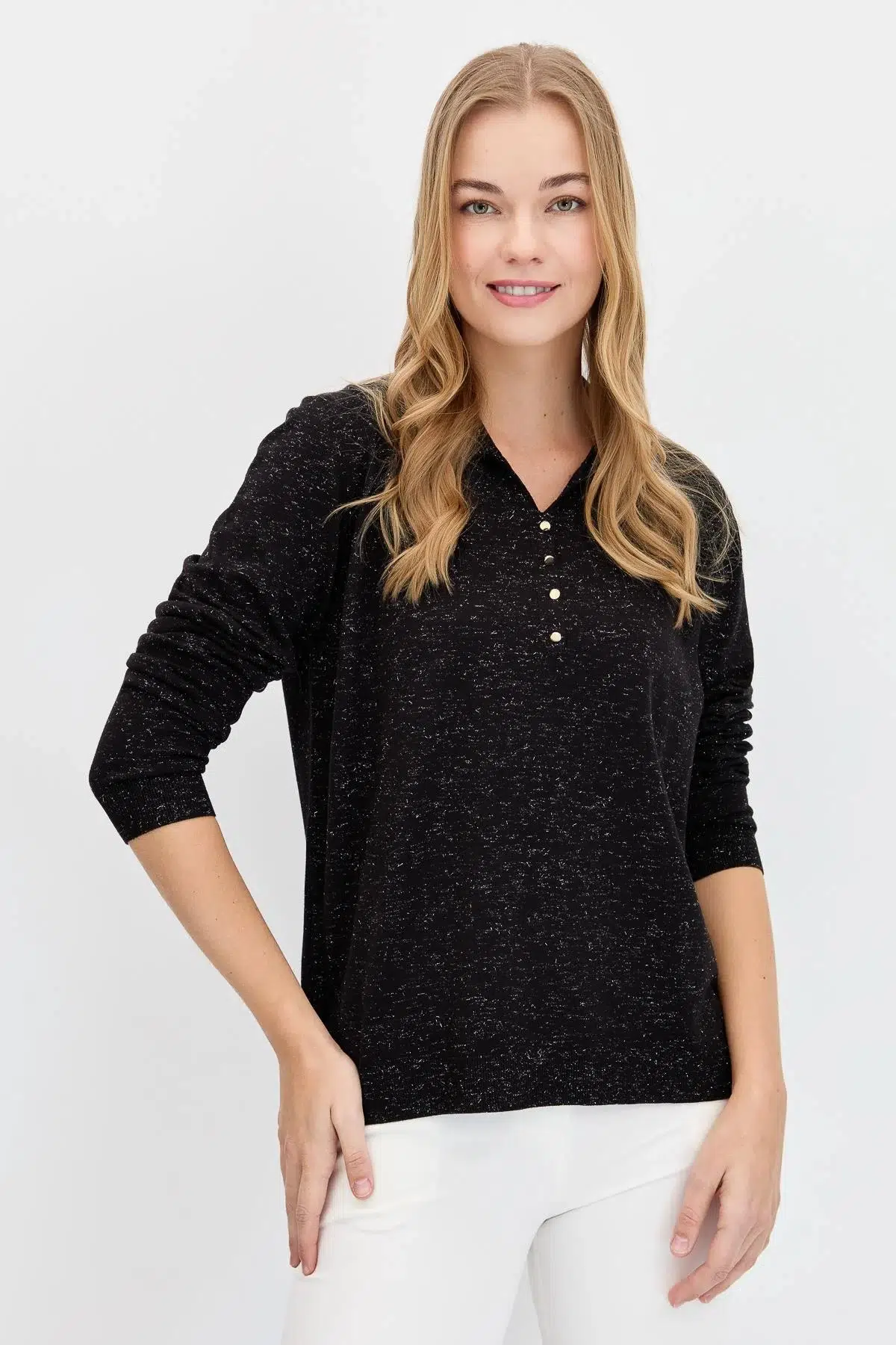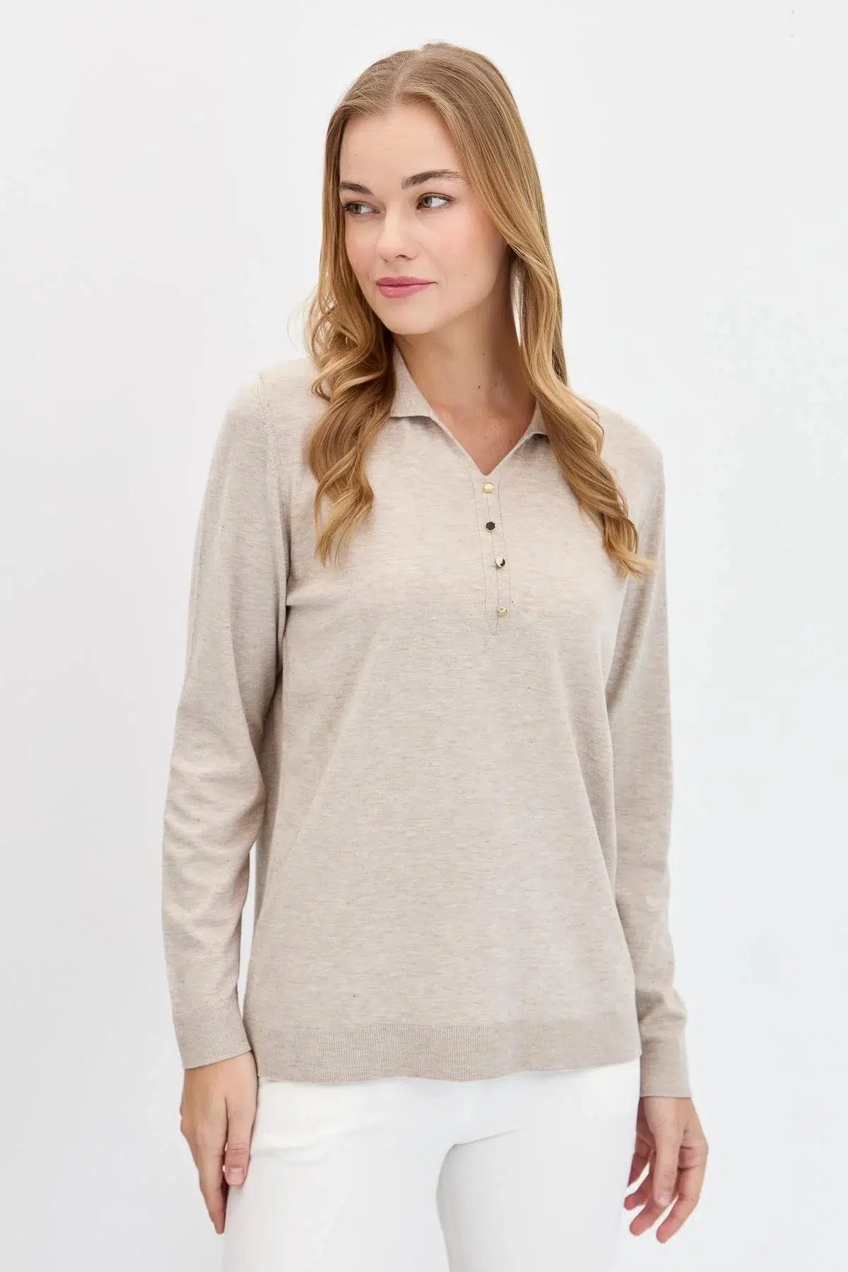 Etiketler23026 DESEN TRİKO POLO YAKA ANGELİNA BASİC BLUZ