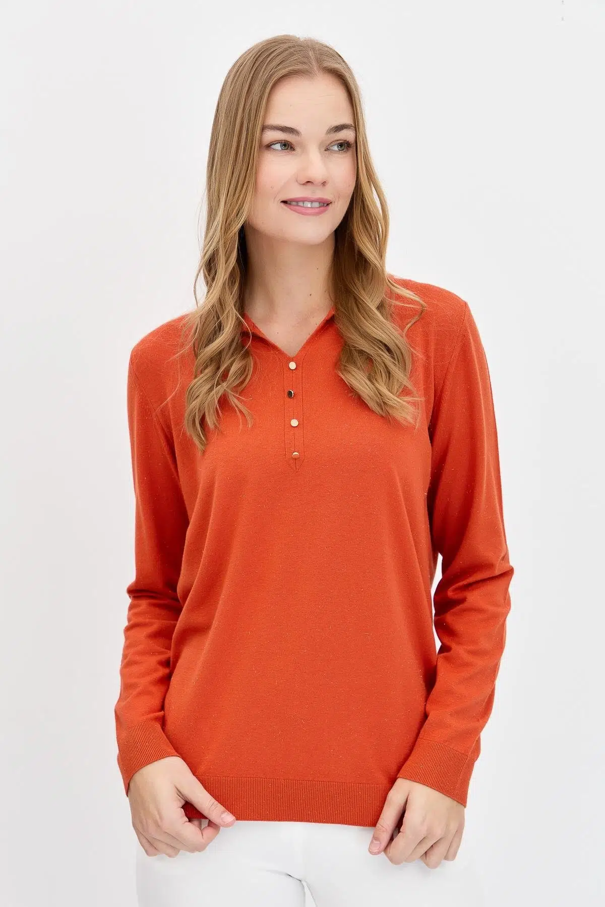23026 DESEN TRİKO POLO YAKA ANGELİNA BASİC BLUZ