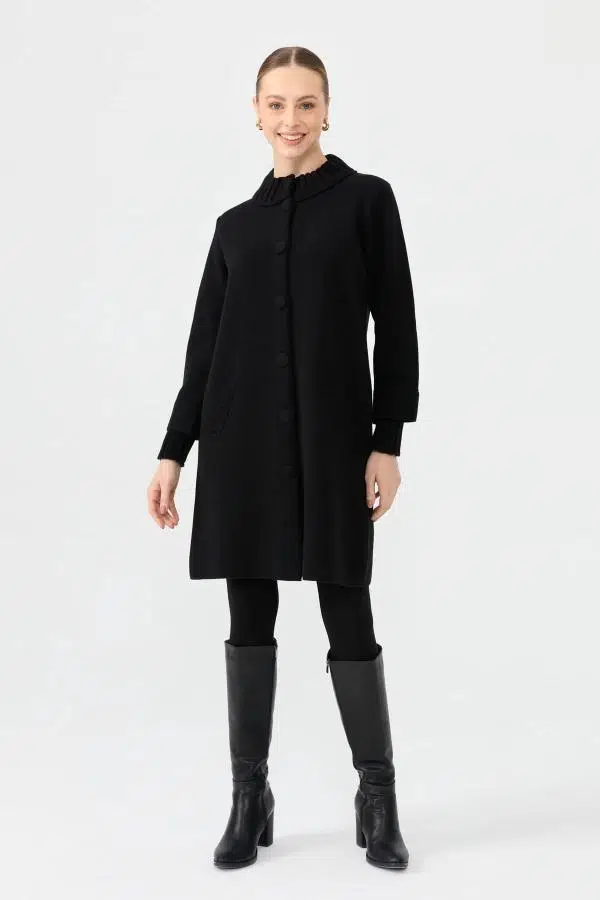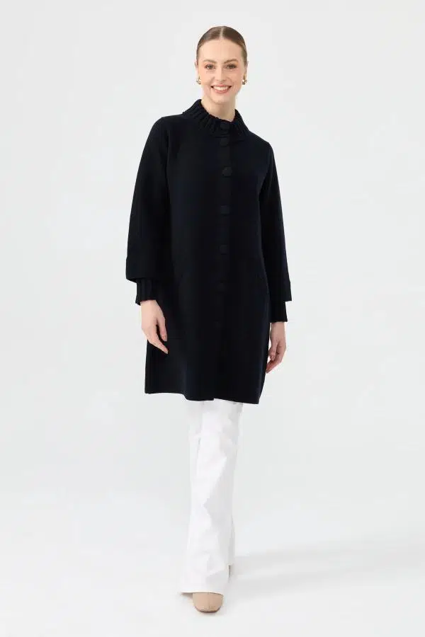 Etiketler24045 DESEN TRİKO YAKASI KOL AĞZI ÜÇ NO ÖRGÜ DÜĞMELİ BASİC KADIN UZUN KABAN