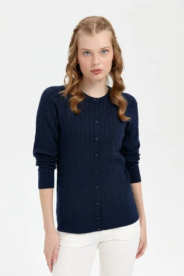 24326 DESEN TRİKO SAÇ ÖRGÜLÜ SIFIR YAKA KOMPLE CEKET