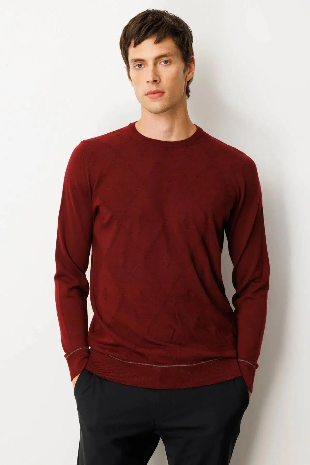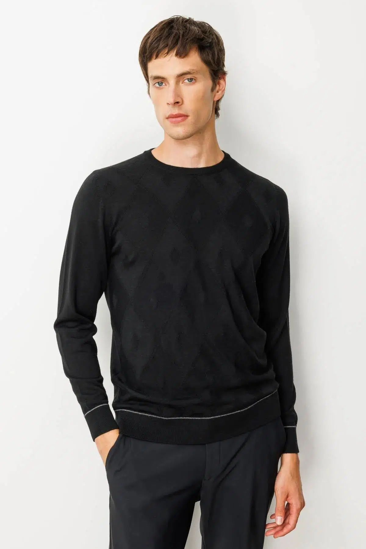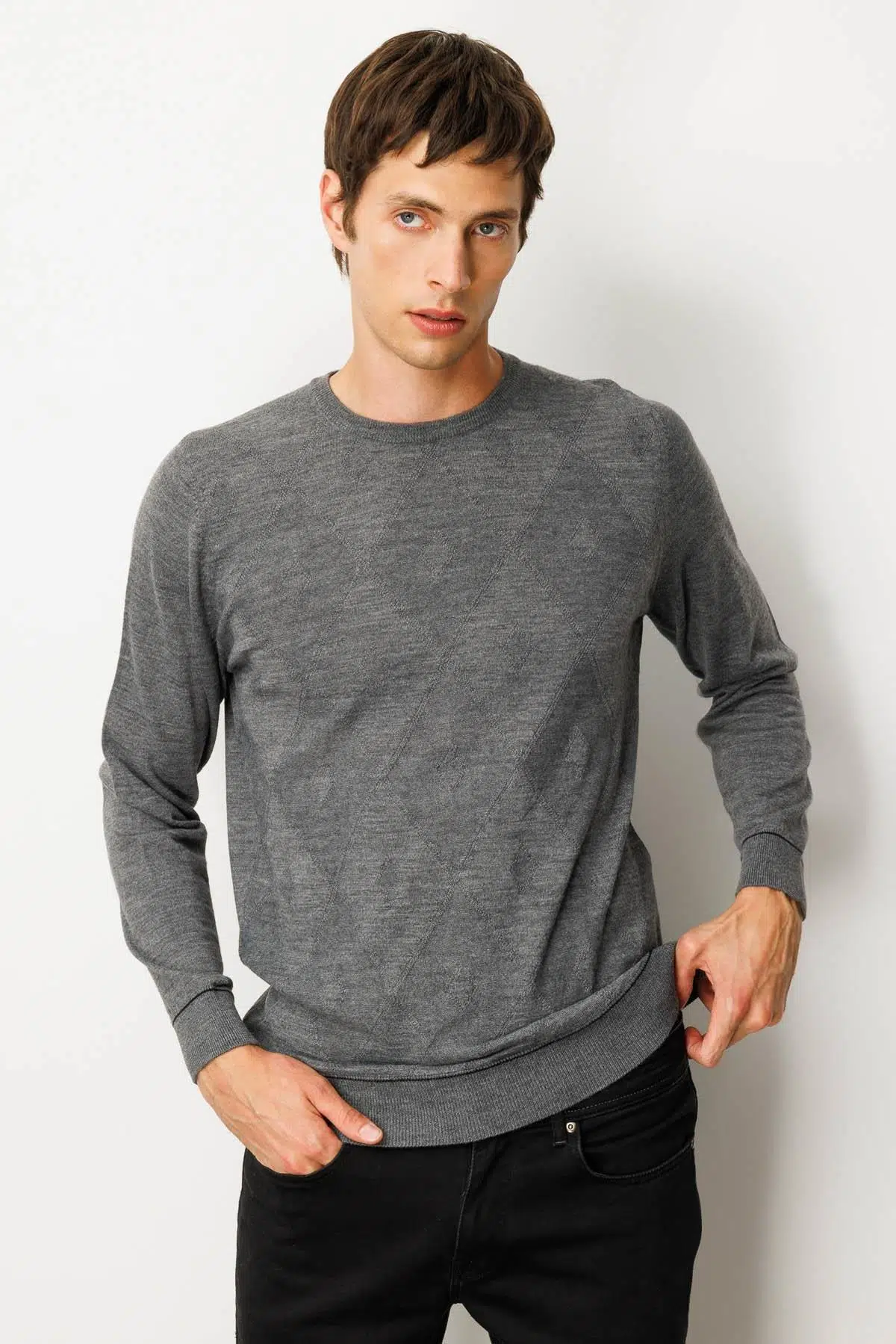 Etiketler25603 DESEN TLL 50/50 LASTİKLİ ÇİZGİLİ SY BAKLAVALI TRİKO ERKEK KAZAK