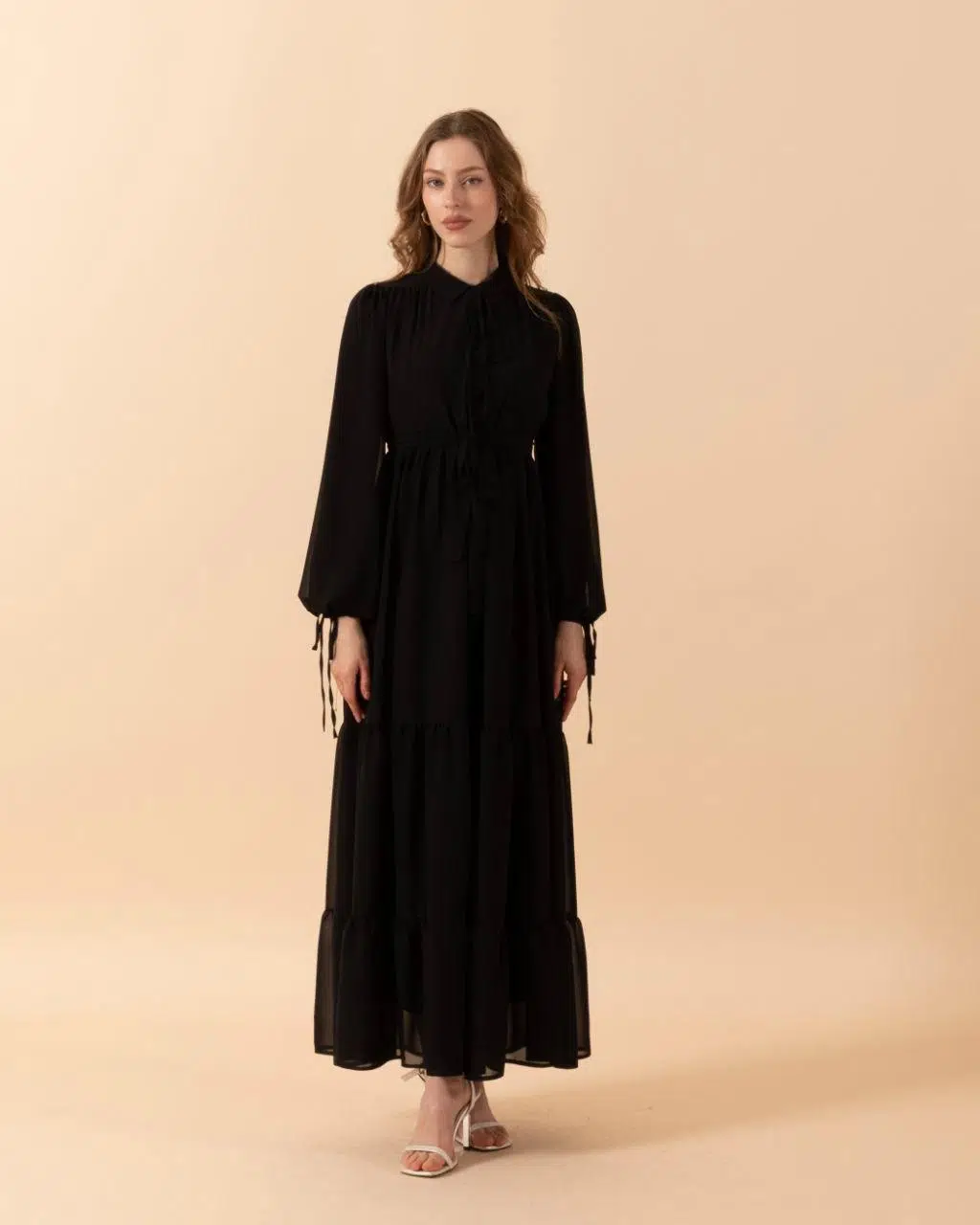 3043 STİLİFE ÖNÜ DÜĞME PARÇALI ELBİSE
