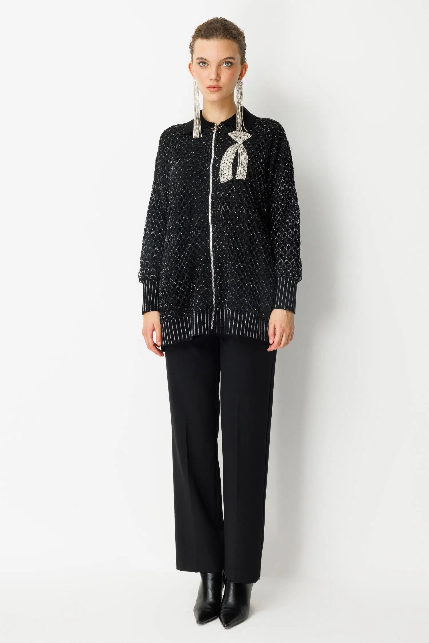 SezonSonbahar/Kış Kumaş% 100 Pamuk Garni% 70 Rlx Akrilik % 25 Yün % 5 Sim Manken ÖlçüleriBoy: 177 Cm/ Göğüs: 82 Cm/ Bel: 61 Cm/ Basen: 89 Cm
