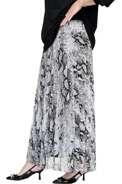 Etiketler5465 SENTEZ DESENLİ PLİSE ŞİFON YILAN DESENLİ ETEK