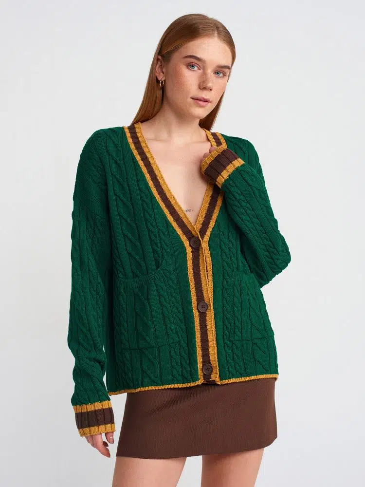 Etiketler60950 DİLVİN V YAKA ÇİZGİLİ DÜĞMELİ CEPLİ TRİKO HIRKA