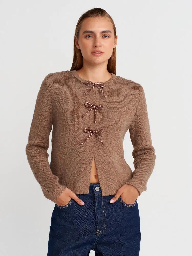 60983 DİLVİN İNCİLİ FİYONK AKSESUARLU TRİKO HIRKA