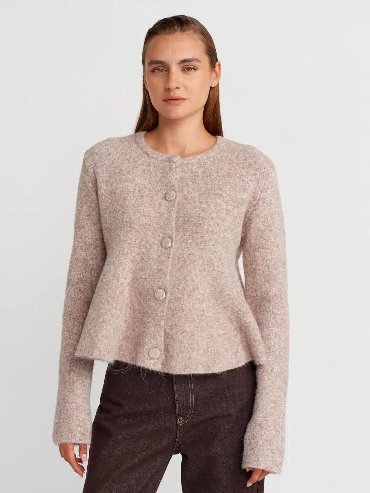 60985 DİLVİN YUMUŞAK DOKULU PEPLUM DÜĞMELİ TRİKO HIRKA