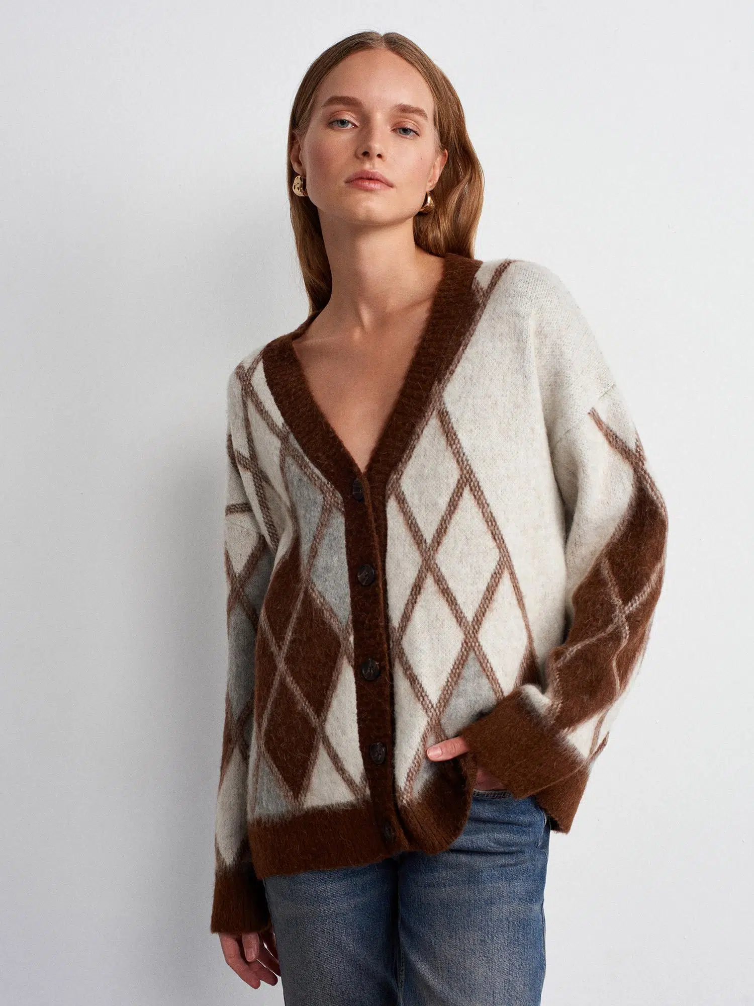 Etiketler60989 DİLVİN V YAKA BAKLAVA DESENLİ ŞARDONLU TRİKO HIRKA