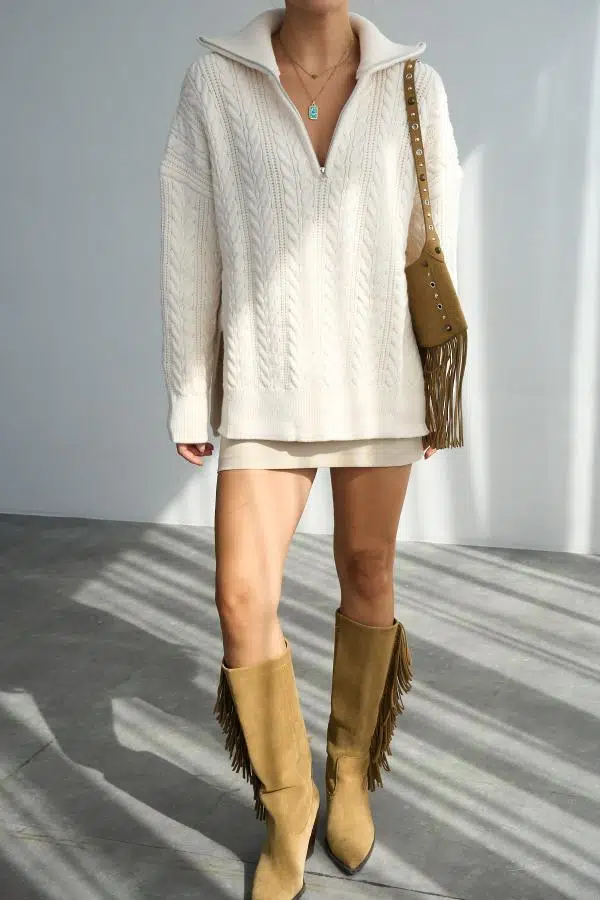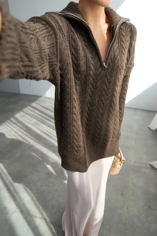 10825 DİLVİN BİSİKLET YAKA ÖRGÜ DETAYLI TRİKO KAZAK