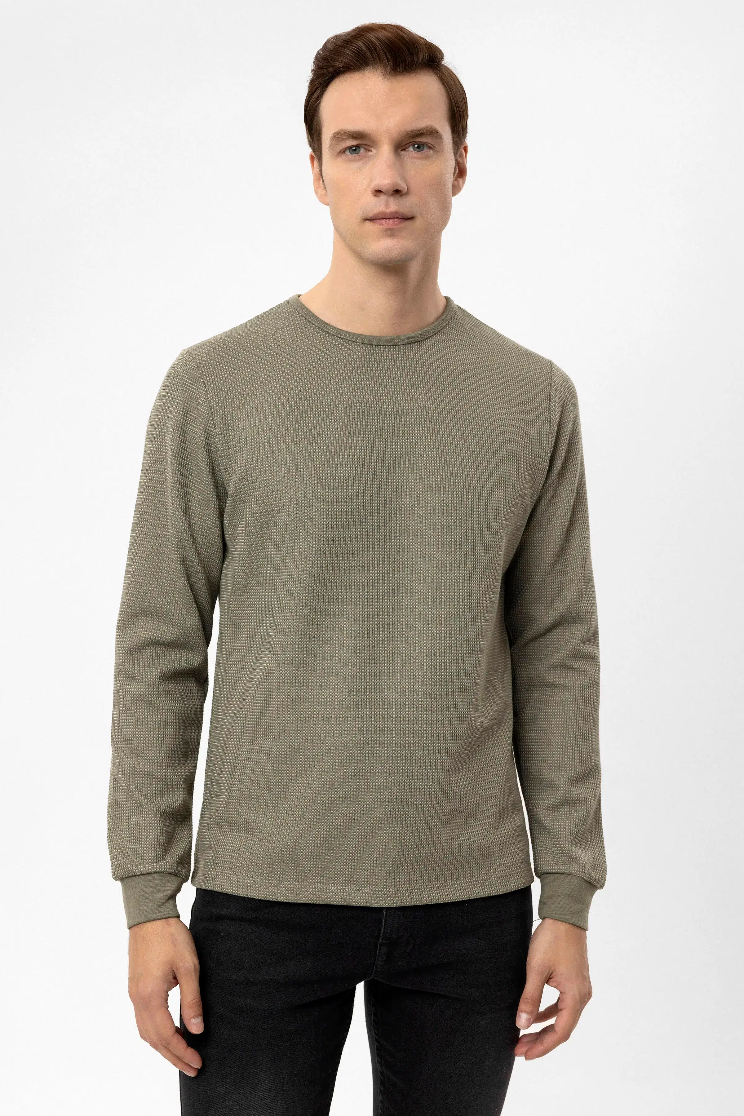 TR2013700365 SÜVARİ SIFIR YAKA UZUN KOL WAFFLE SLIM KALIP TRİKO